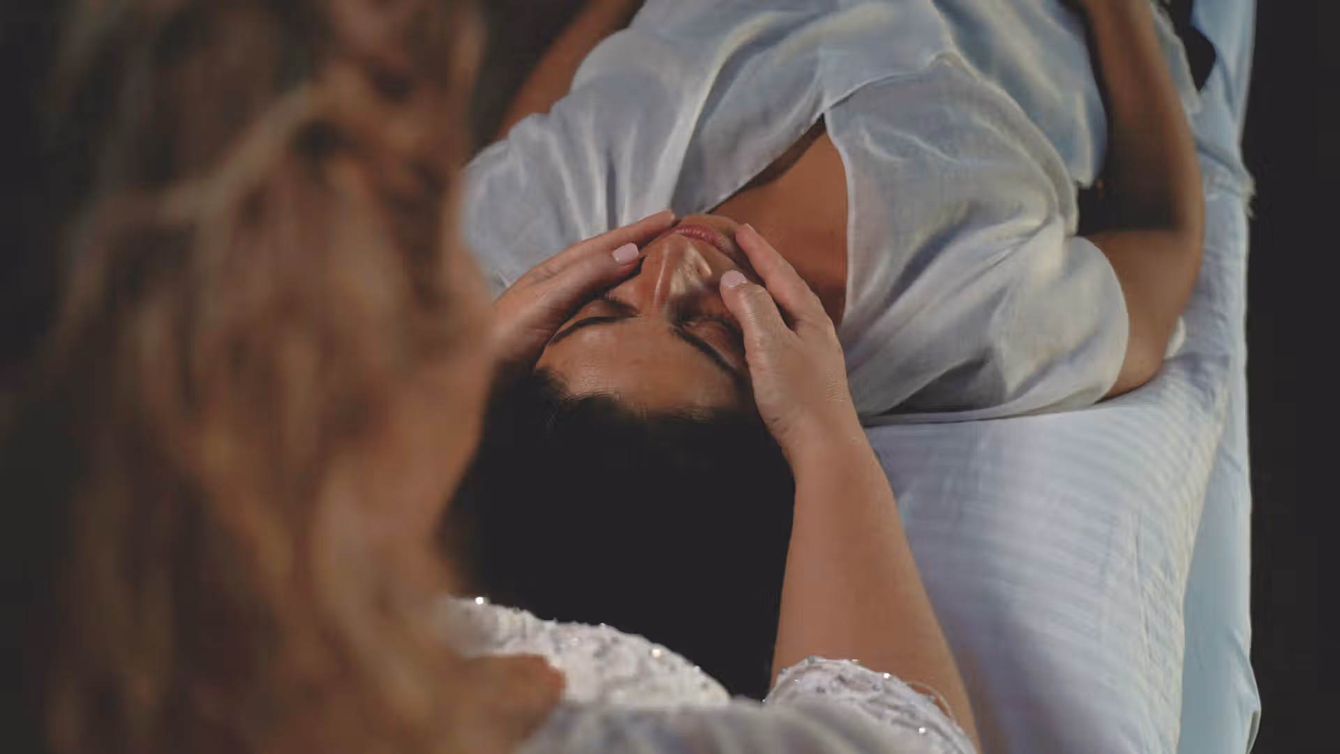 Le praticien applique un toucher doux sur le visage, le cou, la nuque et le décolleté, activant jusqu’à 30 processus énergétiques différents